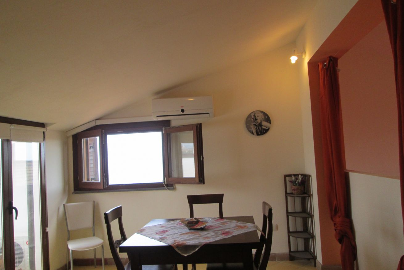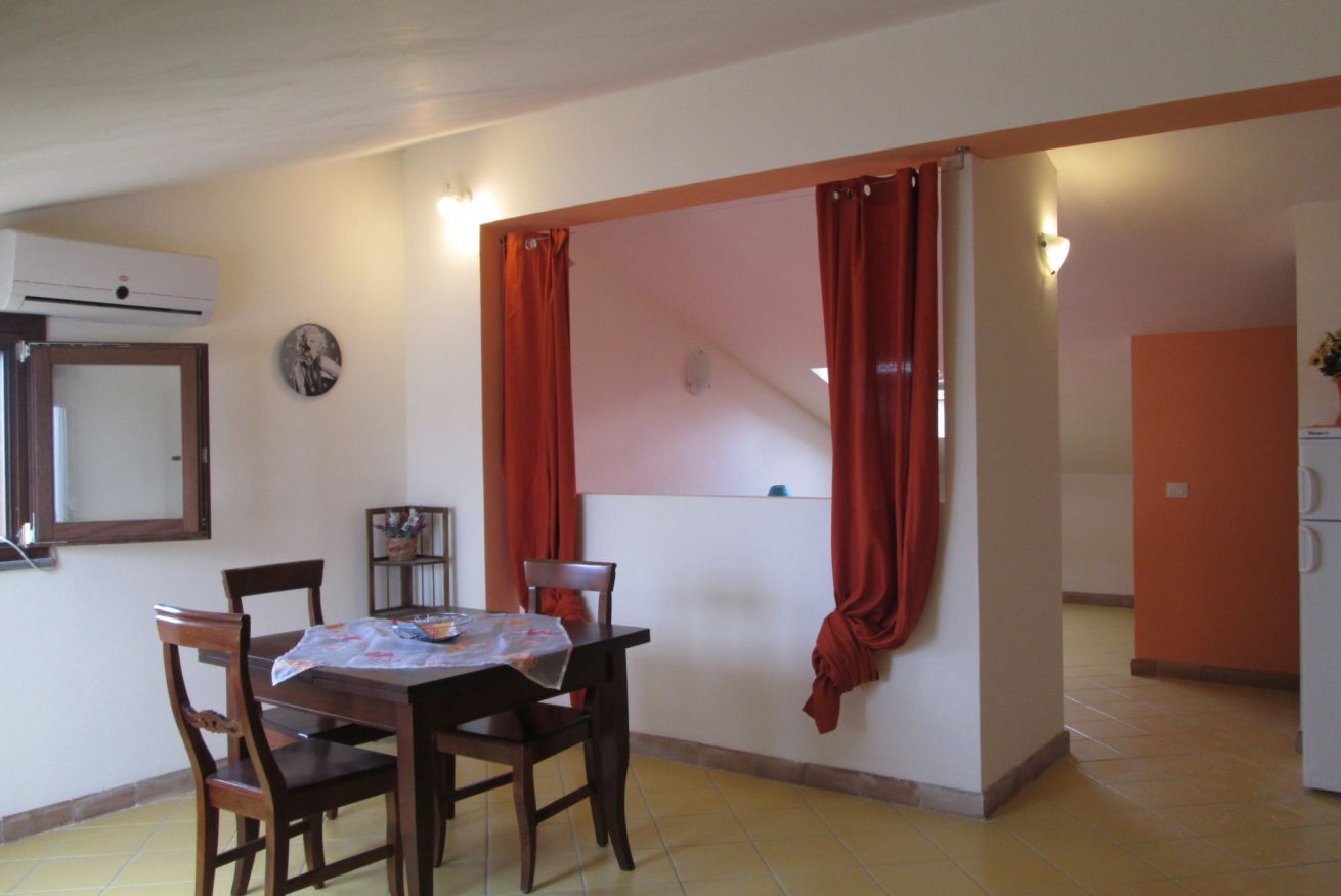 Loft per tre persone (2+1 bambino)​, posto al secondo piano dell'edificio del residence distante circa 20 metri dalla piscina, composto da un unico ambiente suddiviso in: zona notte con letto matrimoniale, zona giorno con cucina attrezzata e divano letto vista mare, bagno, piccolo terrazzino con tavolo e sedie vista mare ed Etna. Molto panoramico.