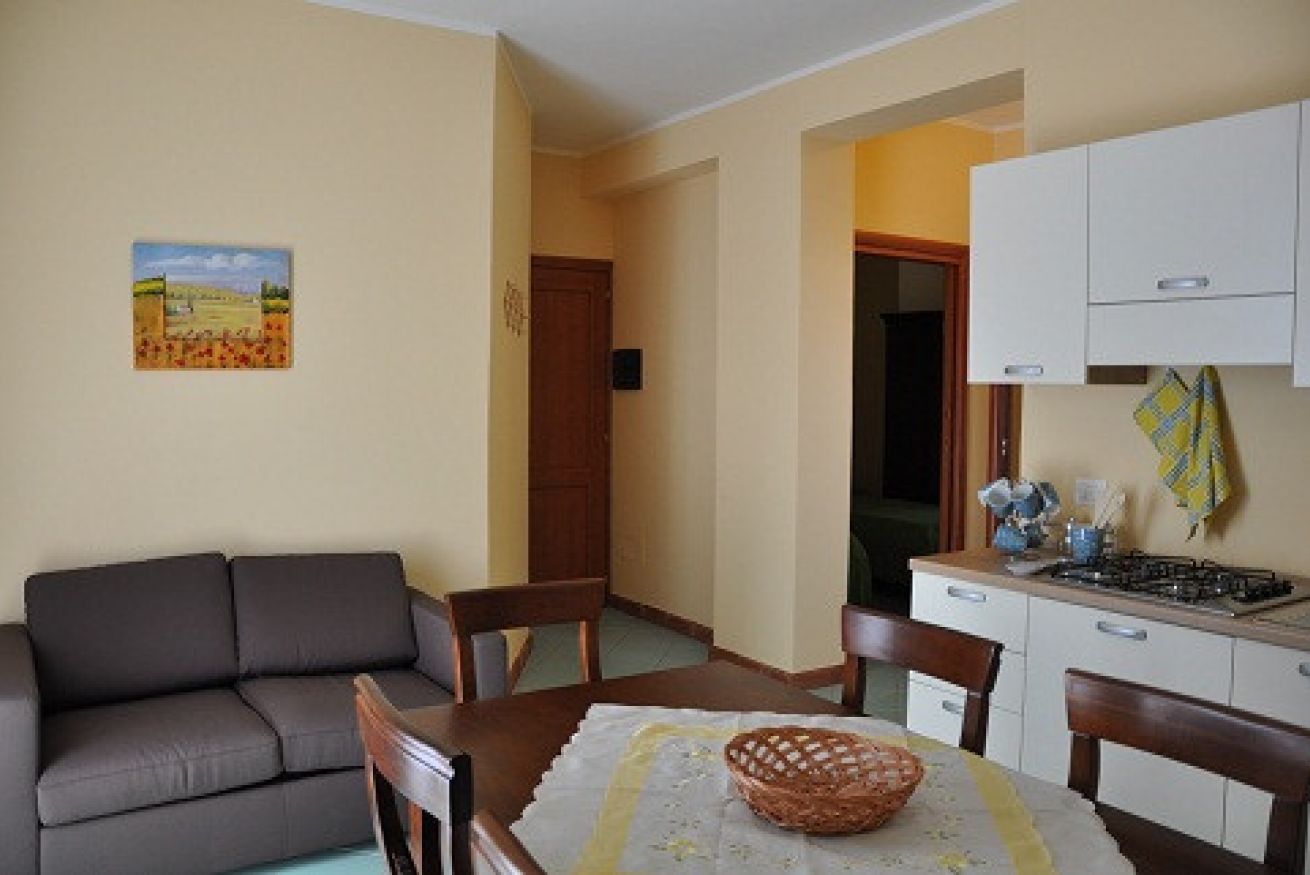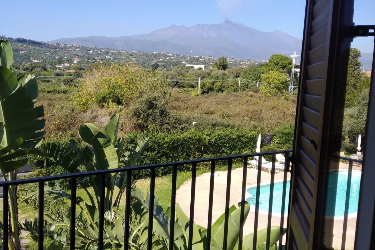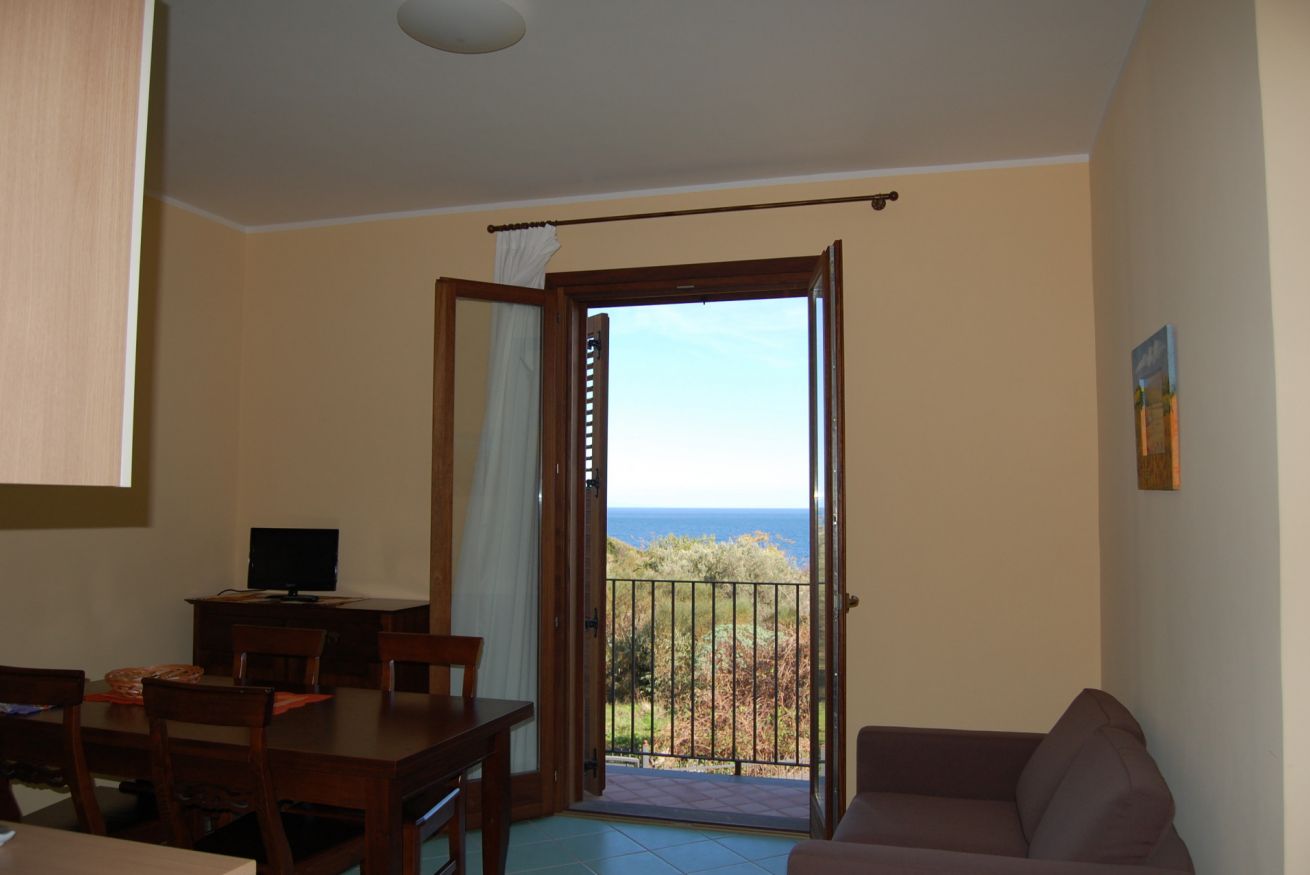 Appartamento per 4+1 persone, posto al primo piano, composto da due camere da letto vista Etna, cucina con divano letto vista mare , bagno, due piccoli balconi.